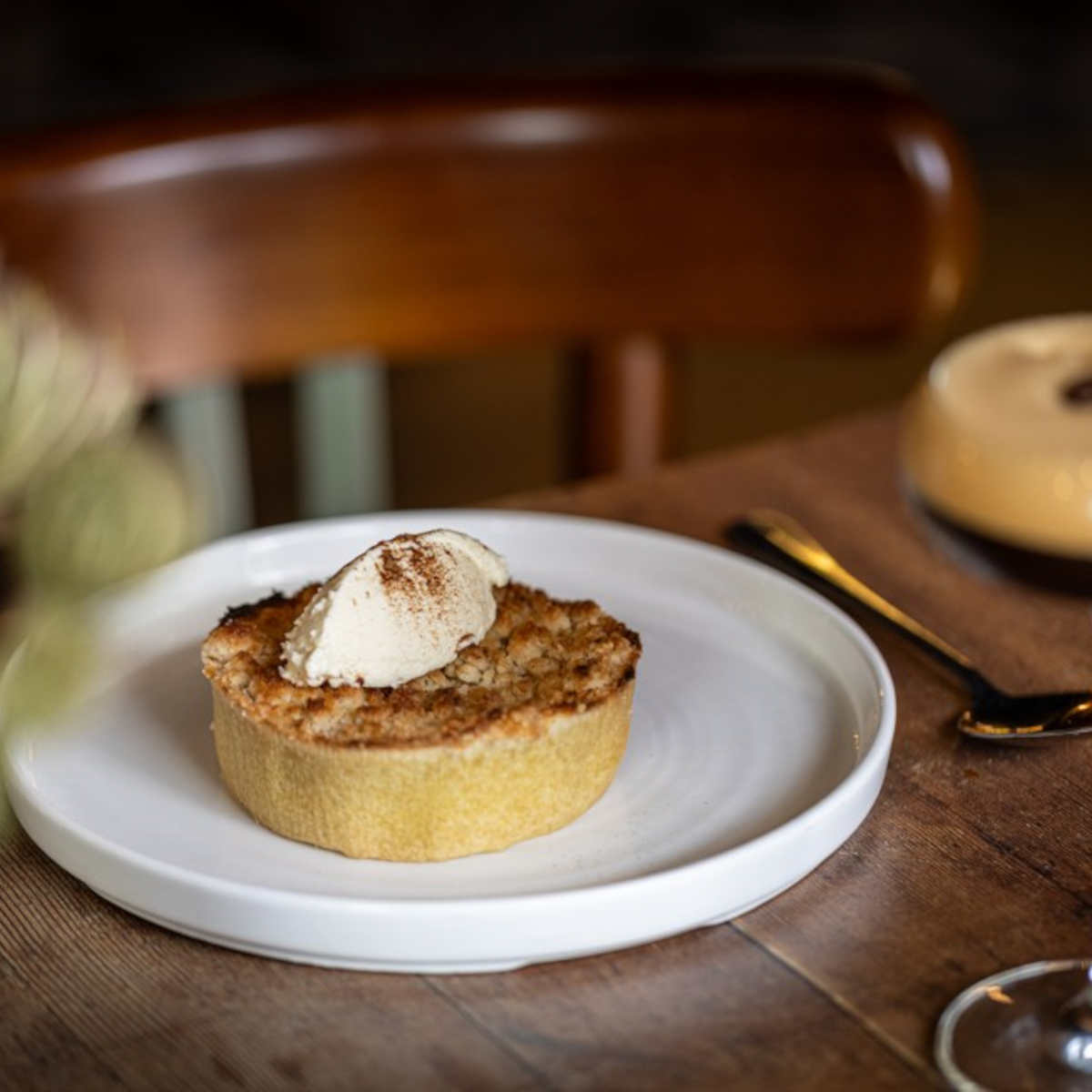 Apple crumble tart, cinnamon cream (v) (ve available) | 7.75 613 kcals